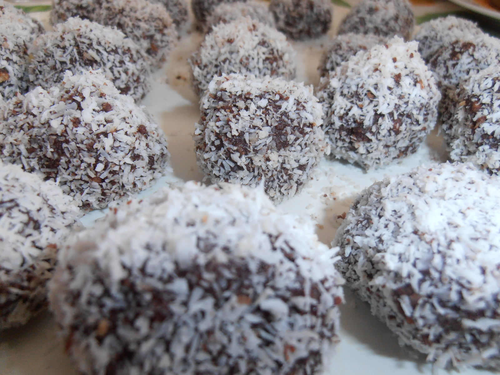 Togliere dal frigo, formare le palline, farle rotolare nella farina di cocco e lasciare riposare in frigorifero finchè diventano dure