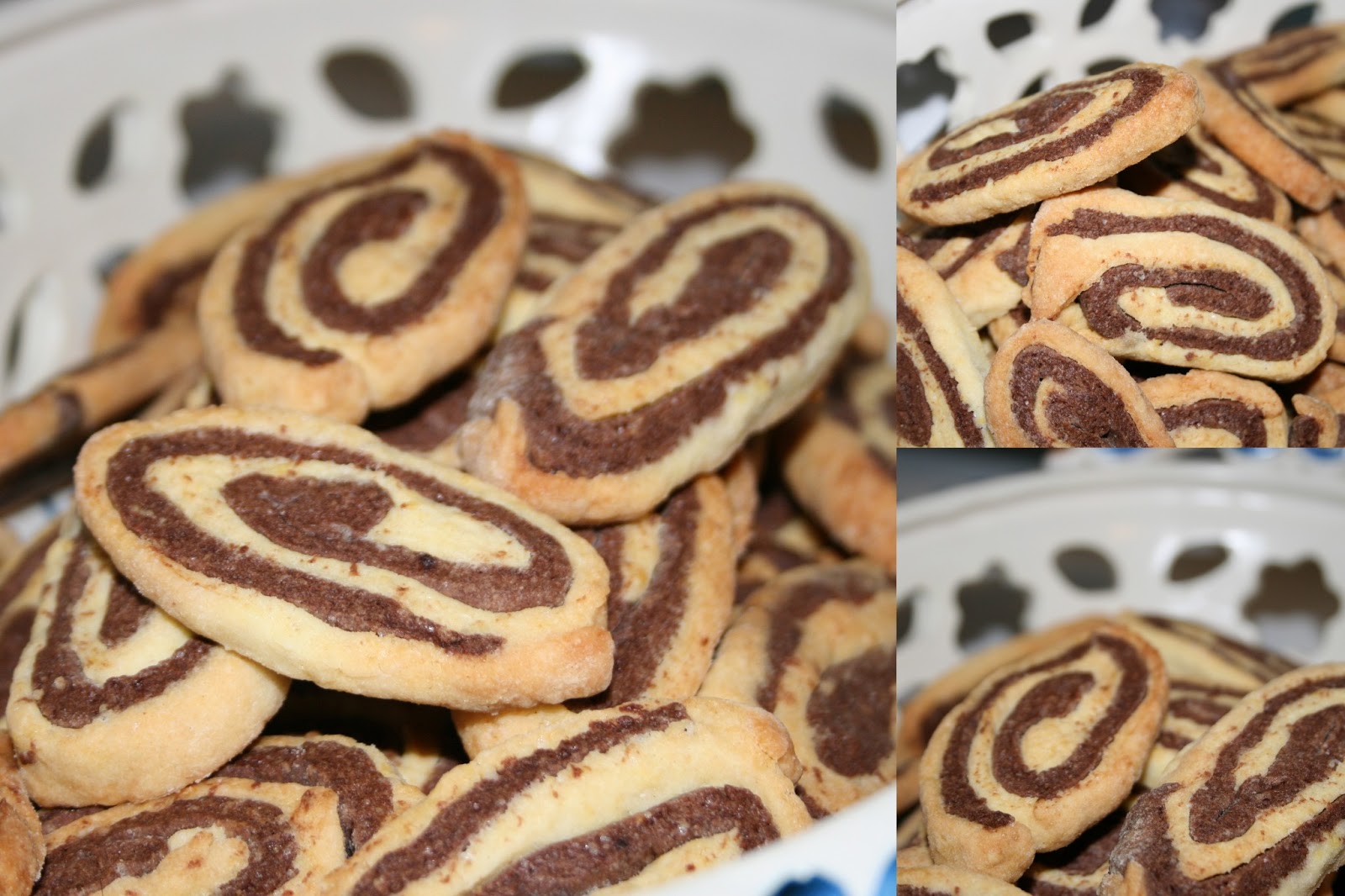 In una terrina lavorate a crema soffice il burro con lo zucchero. Incorporatevi la farina setacciata con il lievito. Dividete l’impasto in due parti, a una mescolate con cura il cacao. Tirate i due impasti a disco di alcuni millimetri di spessore. Sovrapponeteli, arrotolateli, tagliateli a fettine alte un centimetro.