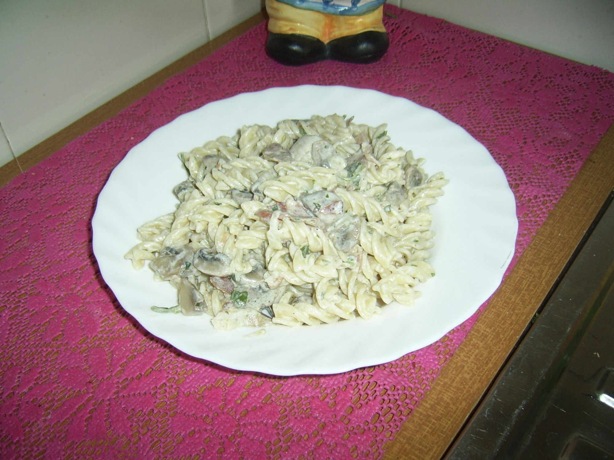 Prendiamo una padella e metterci l'olio e la cipolla affettata a velo e anche i funghi secchi precedentemente ammollati in acqua tiepida e strizzati e dopo qualche minuto quelli surgelati.Unite lo speck tagliuzzato,lasciate stufare il tutto a fuoco basso per 10 minuti,unite un po di prezzemolo e il sale.Unite poi la panna fate insaporire per qualke minuto, intanto cuocete la pasta scolatela e trasferitela nella padella dei funghi,mescolate fate insaporire e servite subito.