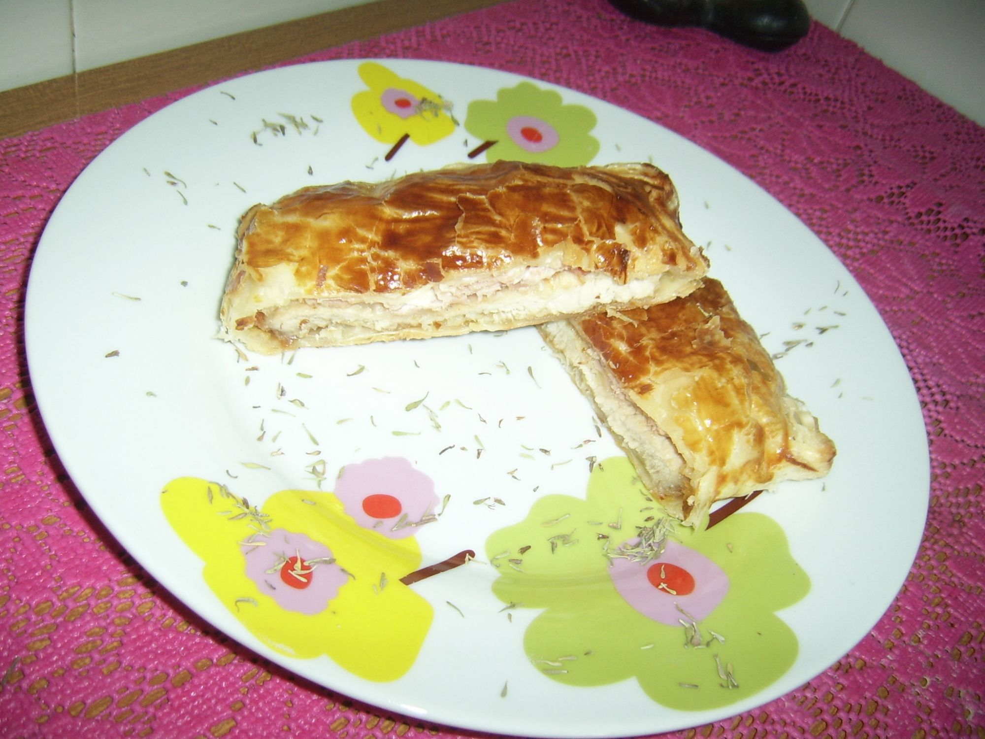 intanto infarina la carne e farla dorare nell olio. Prendi la pasta sfoglia e adagia sopra ogni fetta di carne,sopra metti il prosciutto e la sottiletta,chiudi tipo saccottino e mettila nella teglia con la carta da forno. Ora prendi il tuorlo dell uovo lo sbatti e con un pennello lo spalmi su ogni saccottino, inforna a 220 x 10 minuti.