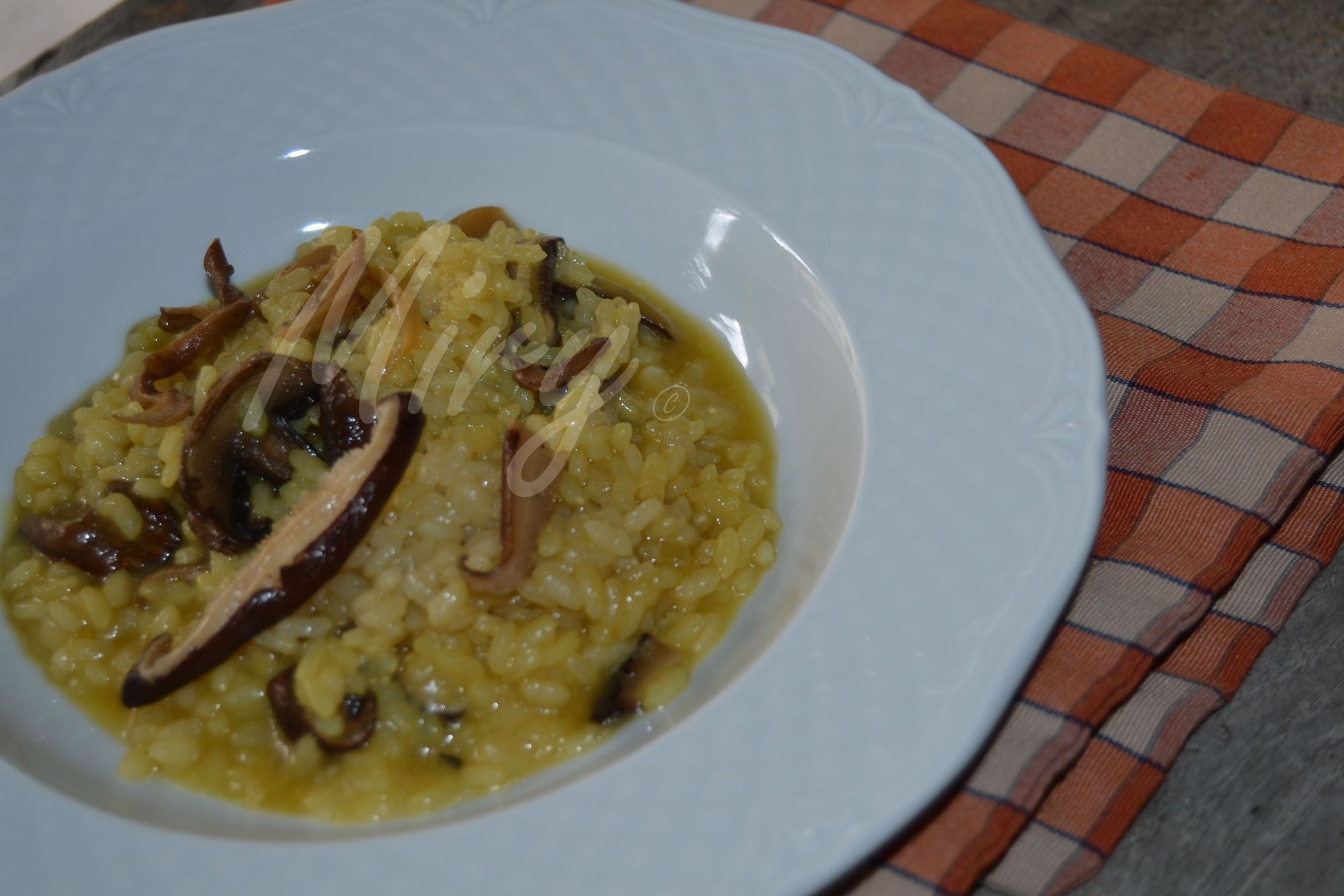 Cuocere il riso bagnandolo all'occorrenza con il brodo alternato all'acqua usata per far rinvenire i funghi (accuratamente filtrata da eventuali traccie di terra).