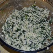 Preparare il ripieno: passare in padella gli spinaci con uno spicchio d'aglio e olio evo. Salare e aggiungere un goccino d'acqua (giusto per non farli attaccare). Appena cotti togliere dal fuoco e far raffreddare.