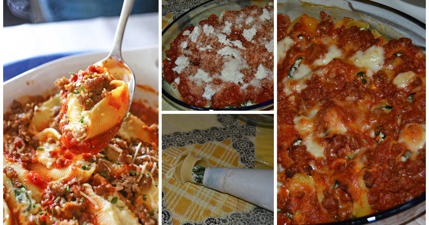 Conchiglioni ripieni con ricotta e spinaci al ragù al forno