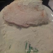 La prima cosa da fare è quella di prendere le fettine di maiale e insaporirle con il sale e poi passarle nella farina.
