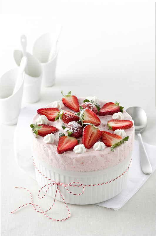 Incorporare alla meringa ottenuta, il purè di fragole e la panna montata.