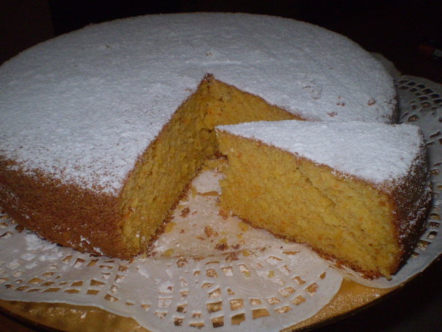 Sfornate la torta, fatela raffreddare, poi sformatela mettetela su di un piatto da portata e servitela cosparsa di zucchero a velo.