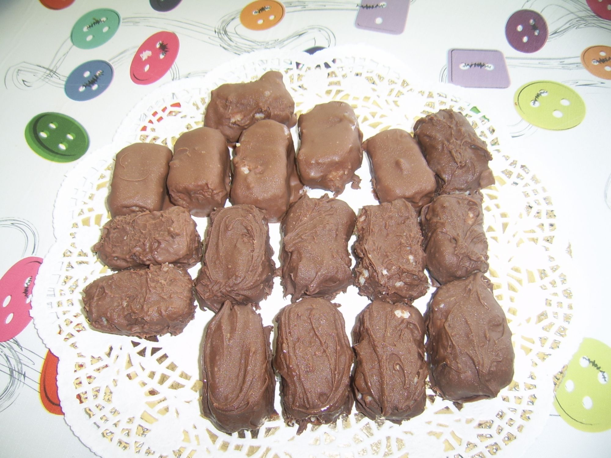 Nel frattempo, fondere il cioccolato a bagnomaria e glassare i bounty uno per uno su carta forno.
