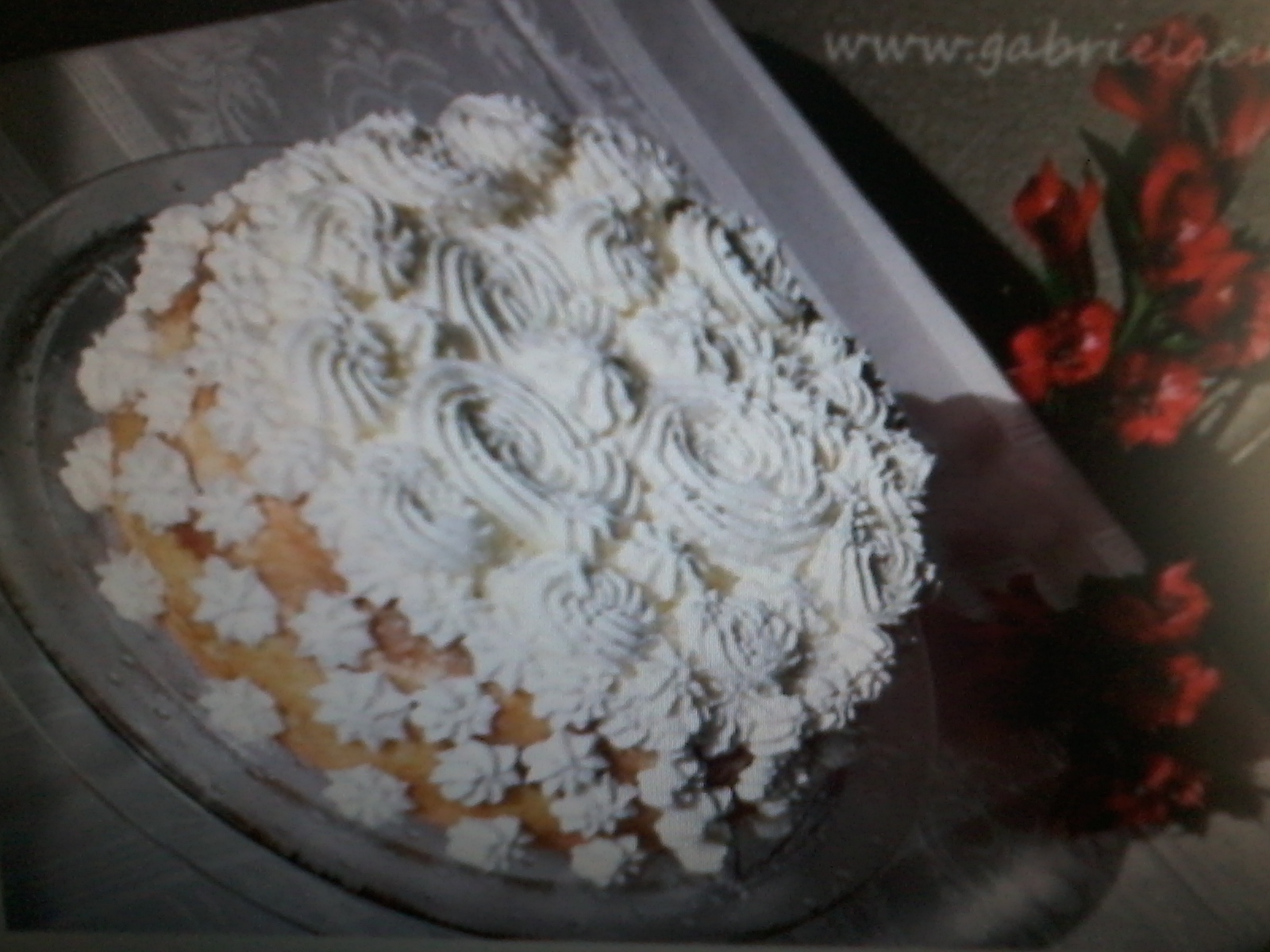 - 4 mele,5 cucchiai di zucchero,canela,noci,crema di zucchero bruciato:5 uova,500ml late,5 cucchiai di zucchero,pandispania:4 uova,4 cucchiai di zucchero,4 farina.marmelata di prunia,panna