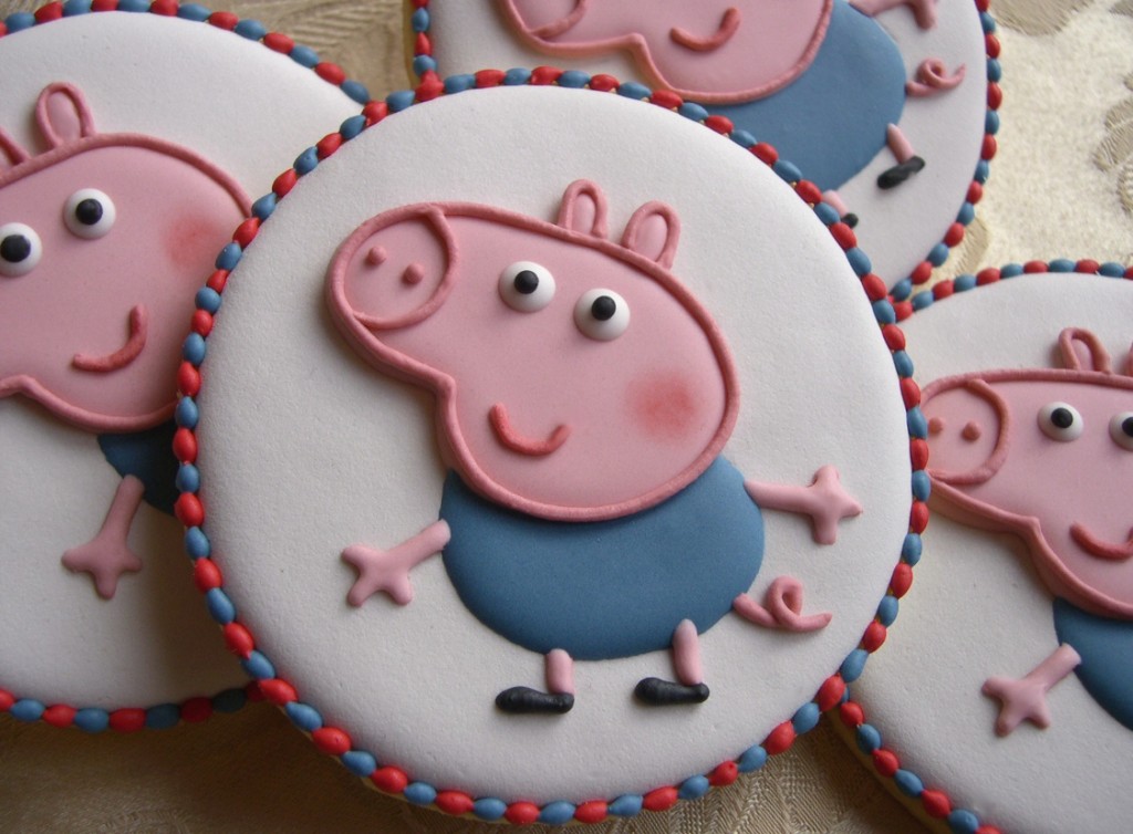 Con la ghiaccia reale fluida rosa fate la testa, aggiustatene i contorni con uno stuzzicadenti seguendo la traccia che avete ricalcato. Battete delicatamente il biscotto sul piano di lavoro per far scoppiare tutte le bollicine d’aria: