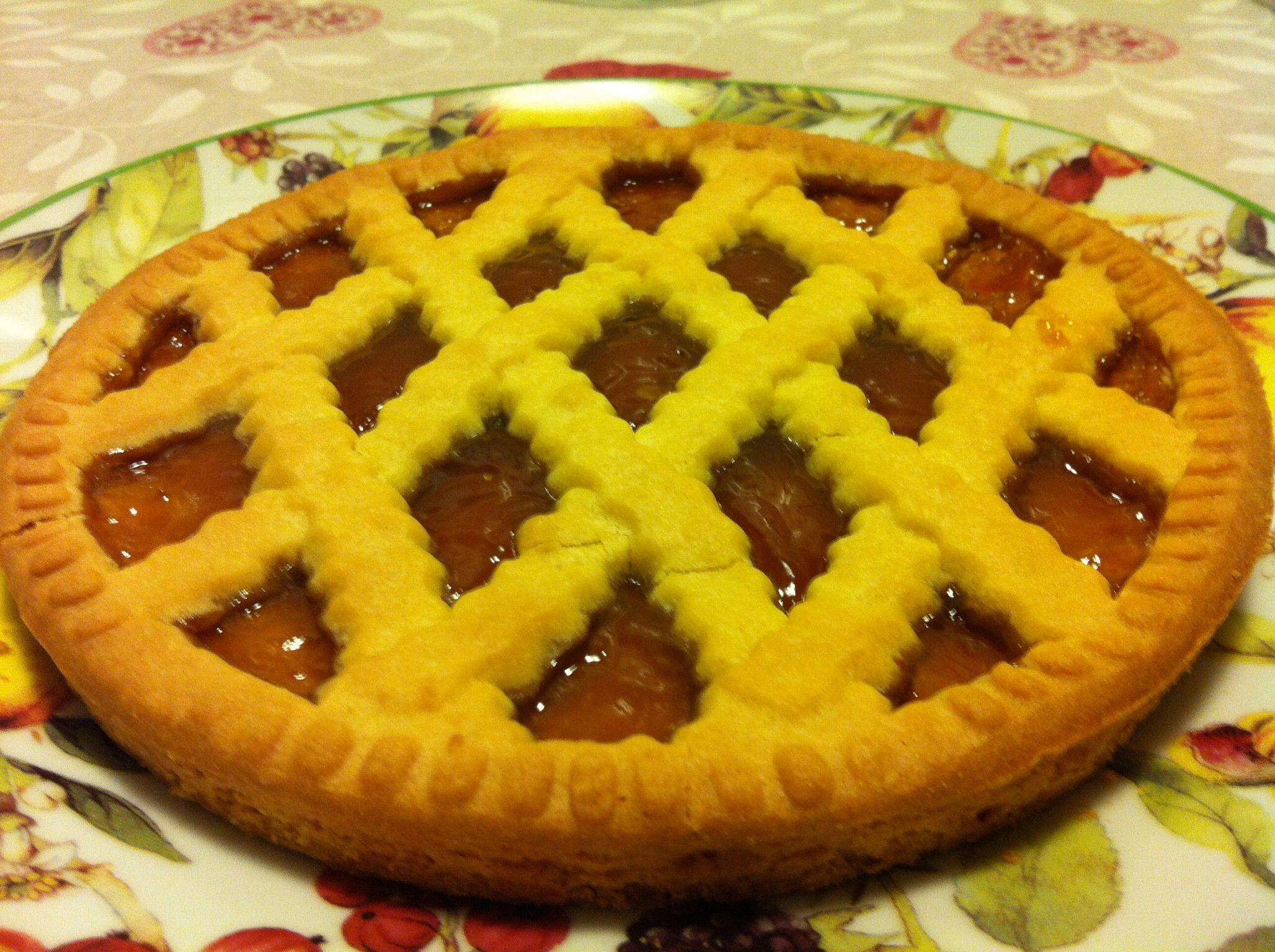 Stendere l'impasto in uno stampo per crostata (con la carta da forno) coprire con la marmellata e finire decorando con le classiche strisce di pasta.