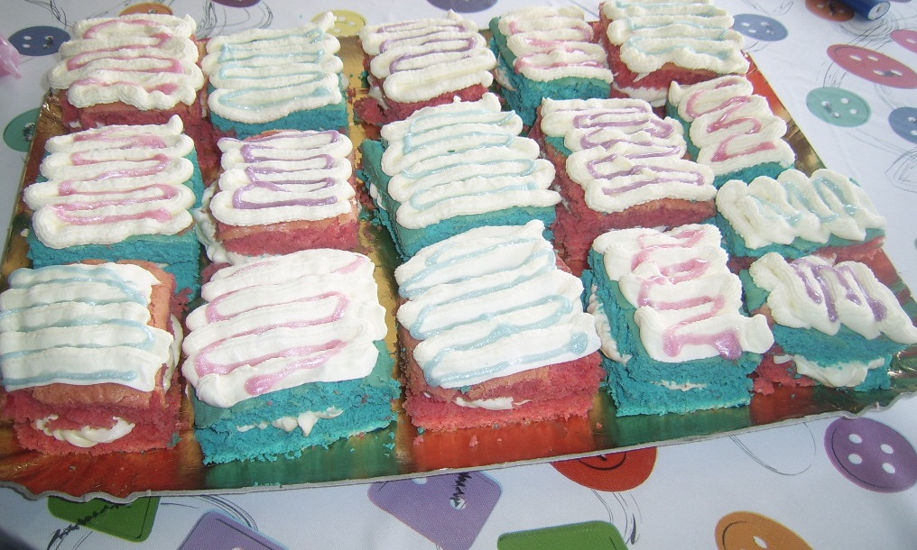 Montare il burro ( a temperatura ambiente ) con lo zucchero , aggiungere le uova una alla volta e amalgamarle per bene ...aggiungere le farine setacciate col lievito , la buccia grattugiata del limone il colorante e la vanillina . Imburrare e infarinare la tortiera e versare l impasto , livellandolo per bene . Cuocere a forno già caldo a 170 per 40 minuti circa ...fare la prova dello stecchino . Ora preparare la farcia ,mettere in ammollo la gelatina per 10 minuti , poi strizzarla e farla sciogliere a bagnomaria ,montare la panna con il miele e la gelatina . Raffreddare per bene la torta e poi tagliarla a metà , la farciamo , terminato la mettiamo in frigo per almeno 2 ore , infine la spolverizziamo con lo zucchero a velo