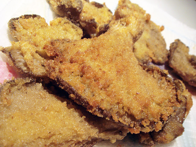 Mondate i pleurotus, sciacquateli rapidamente ed asciugateli. In una scodella, sbattete le uova con una forchetta, passate i pleurotus nell'uovo e poi rivoltarli nel pan grattato. Mettete l'olio in una padella per fritti in modo che arrivi a metà altezza. Quando è molto caldo immergetevi i pleurotus, a gruppi di 5-6 per evitare che si attacchino fra loro, e lasciarli fino a che saranno ben dorati. Dopo averli tirati su, appoggiateli su un doppio foglio di carta da cucina, spolverateli di sale e servirli.