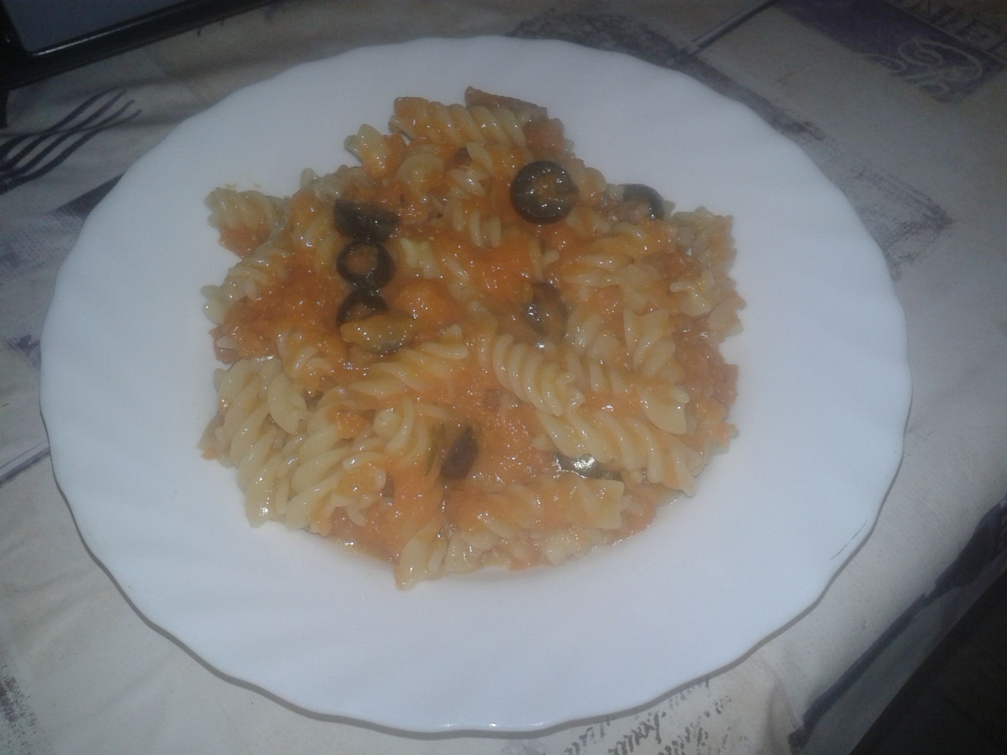 tritato cipolla e rosmarino e fatti soffriggere in padella capiente con un po di olio poi ci ho aggiunto la pancetta ,fatto rosolare ancora un po e poi aggiunto la zucca,il dado,pepe e fatto cucinare a fiamma bassa e con coperchio,quasi a fine cottura ho aggiunto le olive a rodelle,alzato la fiamma per far asciugare la troppa acqua che aveva rilasciato la zucca.Ho cotto la pasta,scolata e versata nella zucca condito con un po di parmigiano e servito