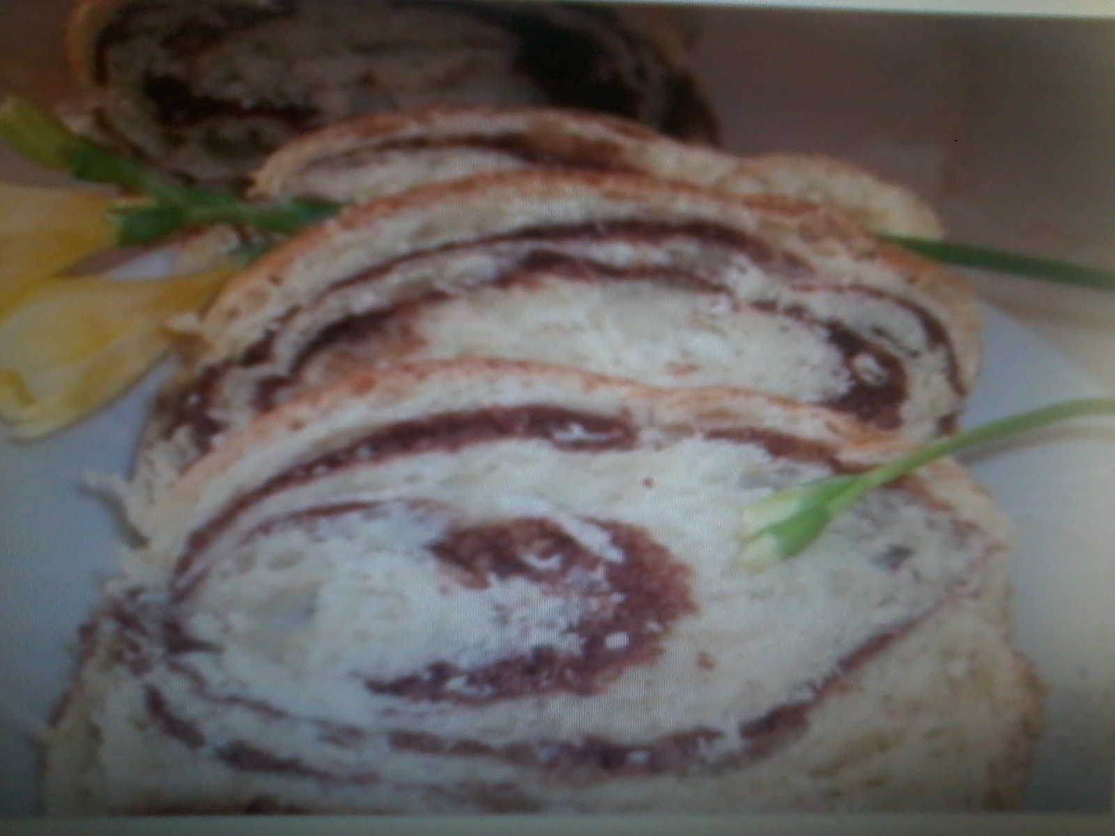 - compozitione:200ml late,800gr farina,sale,125 gr,burro,4 uova,150 gr zucchero,1 limone,30 gr livito naturale.ripieno:2 albumi,4 cucchiai zucchero,2 cucchiai cacao,150 gr noci macinati,50 gr uveta