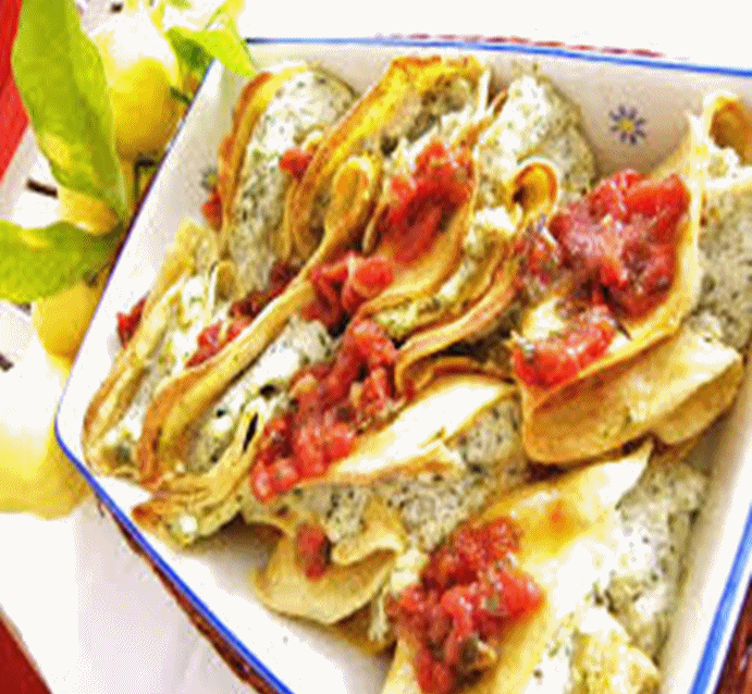 • Ponetele in forno caldo a 180 gradi per circa 15 minuti. Servite ben caldo, decorando con foglie di basilico.