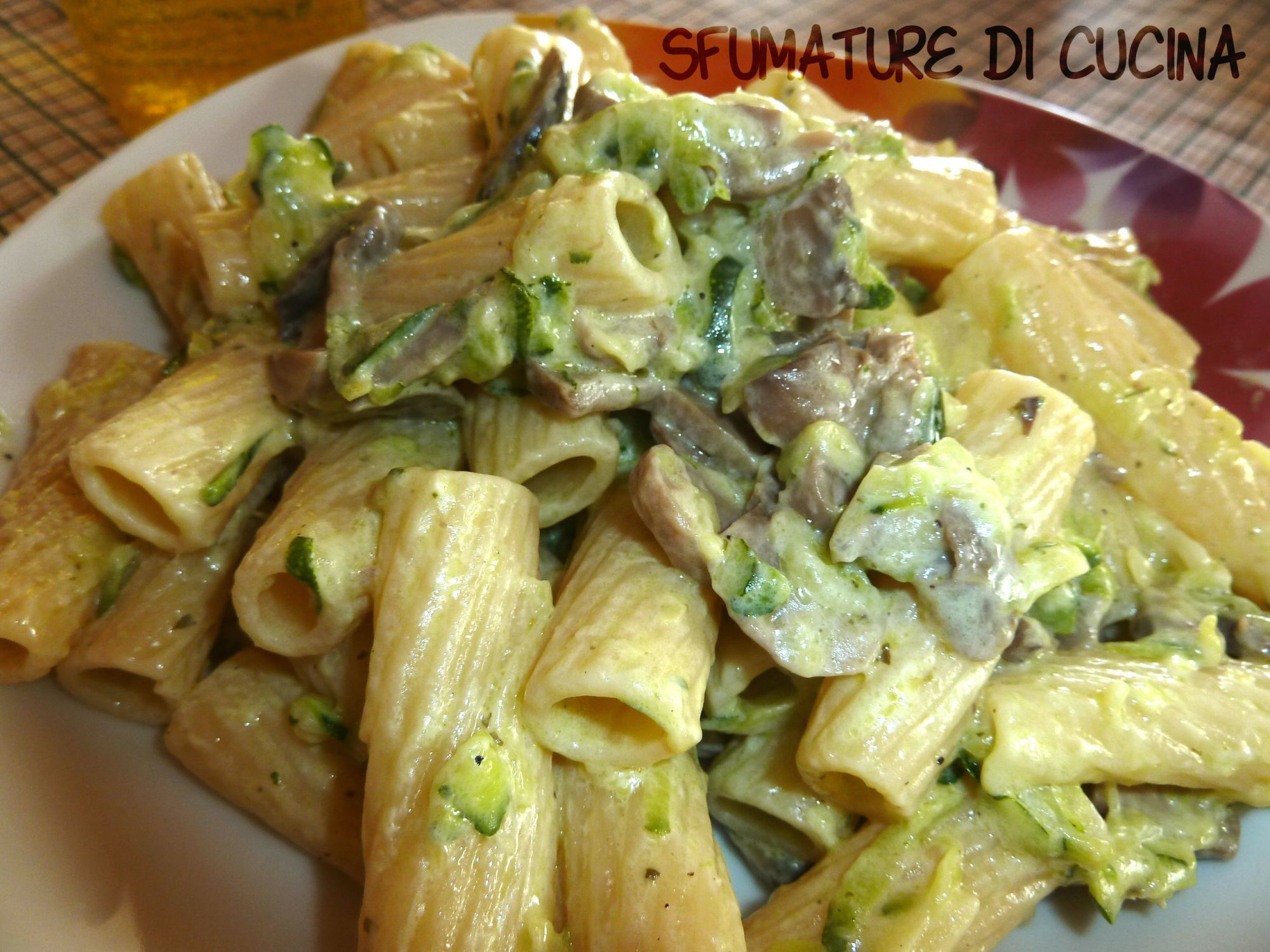Lavate e tagliate le zucchine in 4 parti, togliete l’ecceso di polpa interna e tagliatele a cubetti. Fatele rosolare nell’olio con uno spicchio di aglio fin quando non si ammorbidiscono. Fatele freddare un pò e frullatele nel mixer o nel frullatore con la philadelphia, un pò di olio e un cucchiaio di grana. Mettete da parte. Nel frattempo pulite i funghi, tagliateli a pezzi e fateli rosolare nell’olio con uno spicchio di aglio e poco prezzemolo ( se vi piace) . Lessate la pasta al dente e versatela nella padella con i funghi, aggiungete la crema di zucchine e mantecate per qualche minuto a fuoco basso. Impiattate e servite con una bella spolverata di grana.