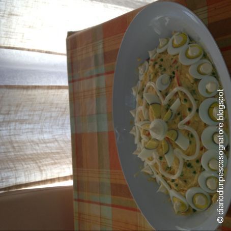 Questo antipasto e' una versione rivisitata della classica insalata russa a base di verdura e tantissima maionaise; per me e' più buona e ha la metà delle calorie!