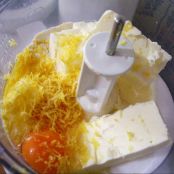 In un robot da cucina, o a mano, impastare velocemente tutti gli ingredienti, se usate il robot da cucina far andare la lama finché non si forma una palla con l'impasto a questo punto continuare ad impastare a mano finché tutto risulti amalgamato, porre il panetto in frigo per circa 30 minuti.