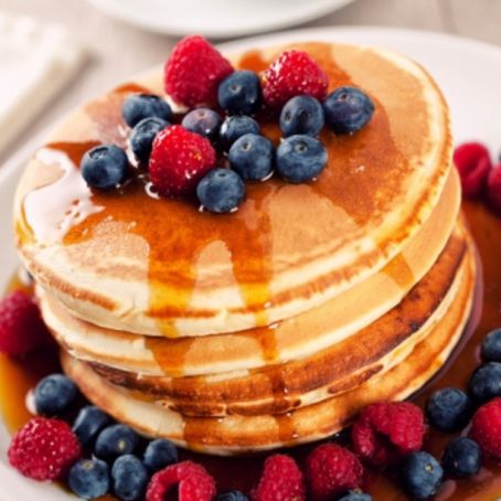 Dividere gli albumi dai tuorli, quindi mescolare insieme gli ingredienti secchi. Far sciogliere il burro in un pentolino, metterlo in una ciotola ed unire il latte. In un'altra ciotola mescolare i tuorli con una frusta manuale, aggiungere lo zucchero, il sale ed il lievito. Unire un po' di latte e la farina gradualmente, quindi aggiungere latte non appena questo verrà assorbito. Mescolare bene con la frusta per evitare la formazione di grumi. Imburrare una padella antiaderente di piccola misura, farla scaldare bene e versare 3 cucchiai di impasto. Fare cuocere fino a quando non si formeranno delle bolle sulla superficie del pancake: girare la frittellina dall'altro lato con una spatola e far cuocere per altri 2-3 minuti.