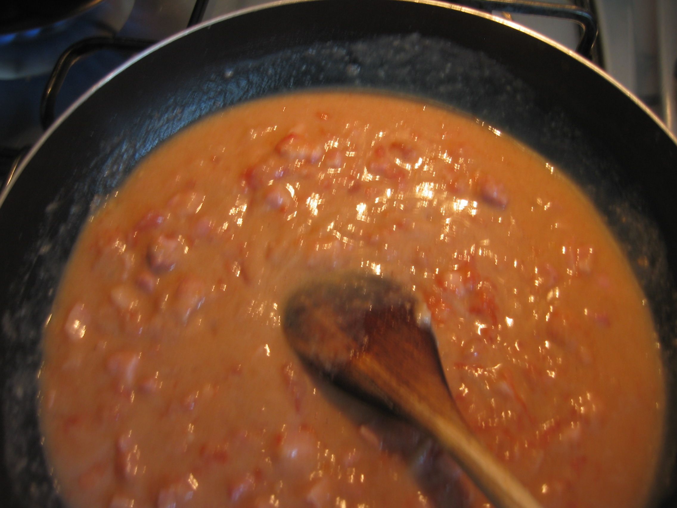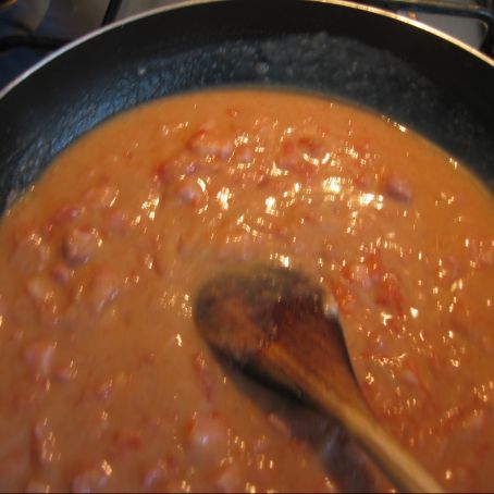 Si prepara una pentola con olio, spicchi di aglio, un ciuffo di ramerino. Si fa sfriggere un po', si mettono pomodorini spellati e si fa bollire lo sfritto col pomodoro Si aggiunge al passato e si fa stare altri 20 minuti