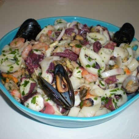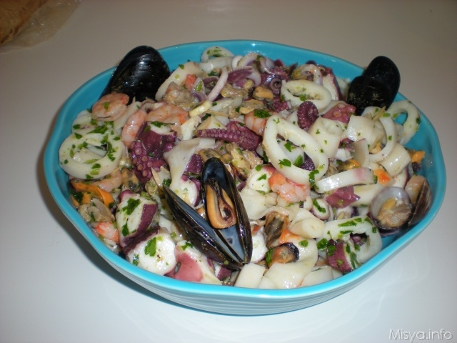 Tagliare il pesce a piacere e condire con un trito di aglio, olio, prezzemolo, pepe, peperoncino, limone e qualche verdura.