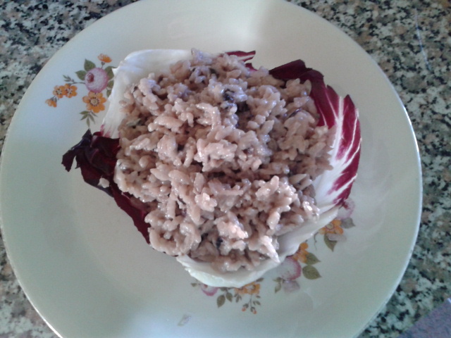 Poco prima che il riso sia cotto, aggiungere il gorgonzola e lasciarlo sciogliere.