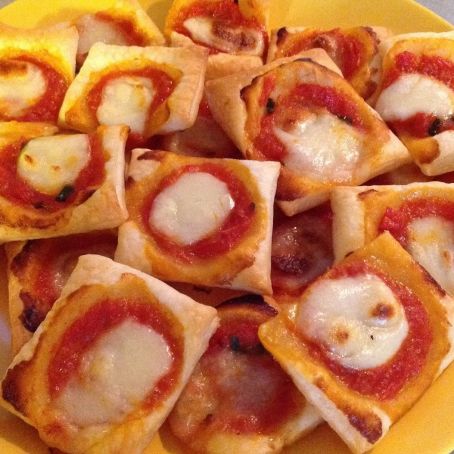 Tagliarla a quadratini di circa 2,5 x 2,5 cm. Mettere nella parte centrale 1/2 cucchiaino di passata di pomodoro. Aggiustare di sale. Aggiungere 1 o 2 cubetti di formaggio o mozzarella. Cospargere con origano.