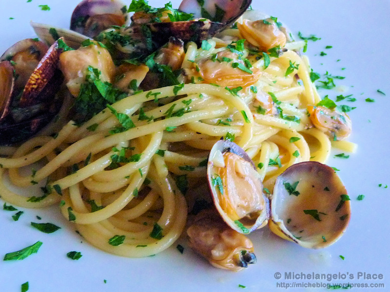 Far sfriggere in un tegame olio e aglio poi si mettono le vongole e si fanno stare 10 minuti a fuoco basso. Quasi alla fine mettere prezzemolo e poi l'acqua delle vongole e far ritirare.