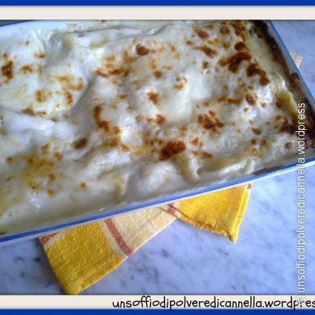 Cuocere in forno caldo 220° per circa 15-20 minuti (comunque controllate ed eventualmente prolungate o diminuite il tempo perchè varia dal tipo di pasta) fino a che la superficie della lasagna non sarà diventata dorata e la pasta sarà cotta.