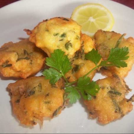 Lavare il prezzemolo e tagliarlo, sciogliere il lievito nell'acqua, aggiungere la farina ed il prezzemolo sminuzzato.