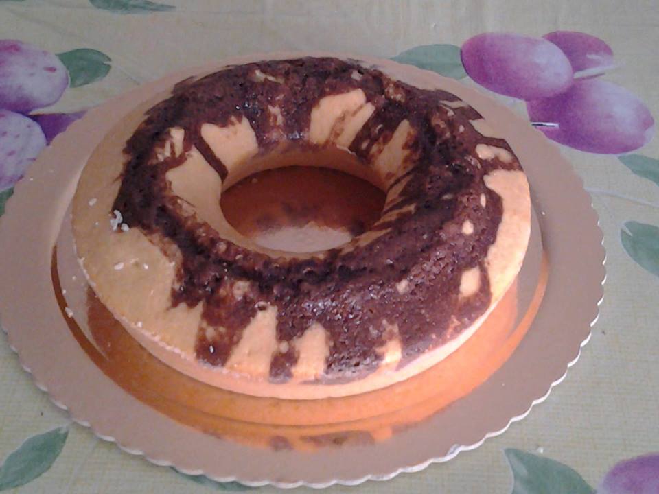 Sbattere lo zucchero con le uova, aggiungere il burro fuso, il latte e la farina ed il lievito setacciati. Dividere l’impasto in due ciotole e su una aggiungere la nutella. Mettere gli impasti a cucchiaiate in uno stampo x ciambella,imburrato ed infarinato, alternandoli.