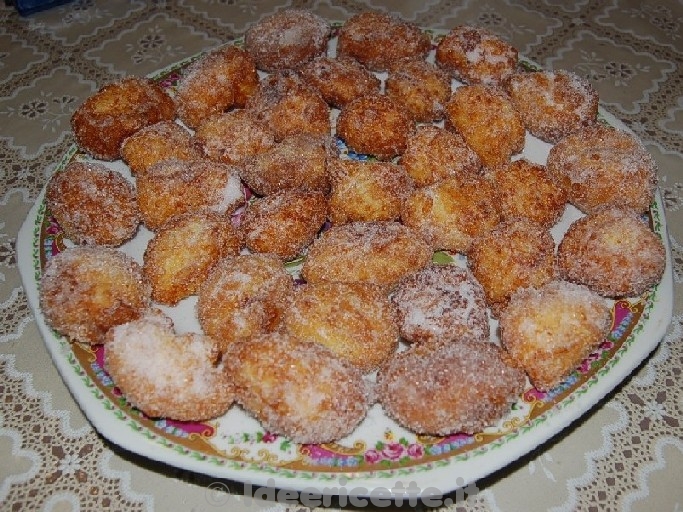 Montare i bianchi a neve. Incorporare il riso, i rossi e le chiare. Poi aggiungere la farina ed il lievito. Dopo 10 minuti friggere in olio