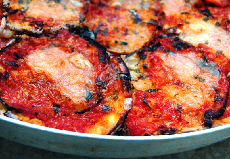 Impanare le melanzane con un composto di uova, pepe, sale e successivamente con la farina e friggerle in una padella con olio di semi.