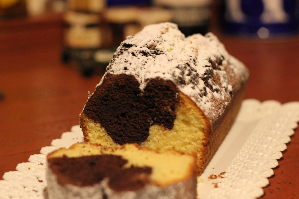 Versare le uova sbattute. Aggiungere la farina, versare il latte e mescolare. Mettere metà impasto in un'altra ciotola. In una delle due versare il cioccolato. Versare nella tortiera prima l'impasto chiaro, poi quello al cioccolato. Con un cucchiaio disegnare le onde.