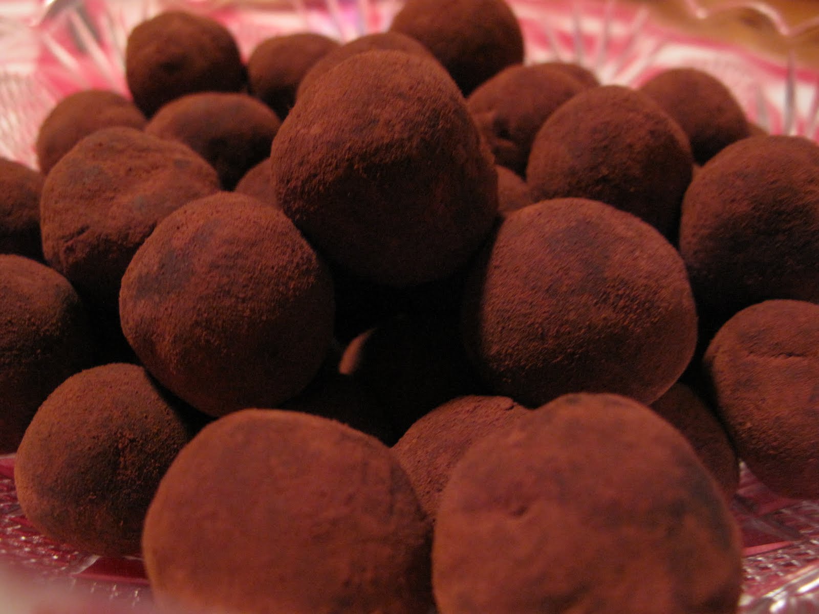 Mescolare e unire i biscotti tritati. Porre l'impasto in frigo e farlo risposare per dieci minuti. Togliere dal frigo e aiutandosi con un cucchiaio ricavare delle palline. Rotolare le palline nel cacao e disporle in un piatto.