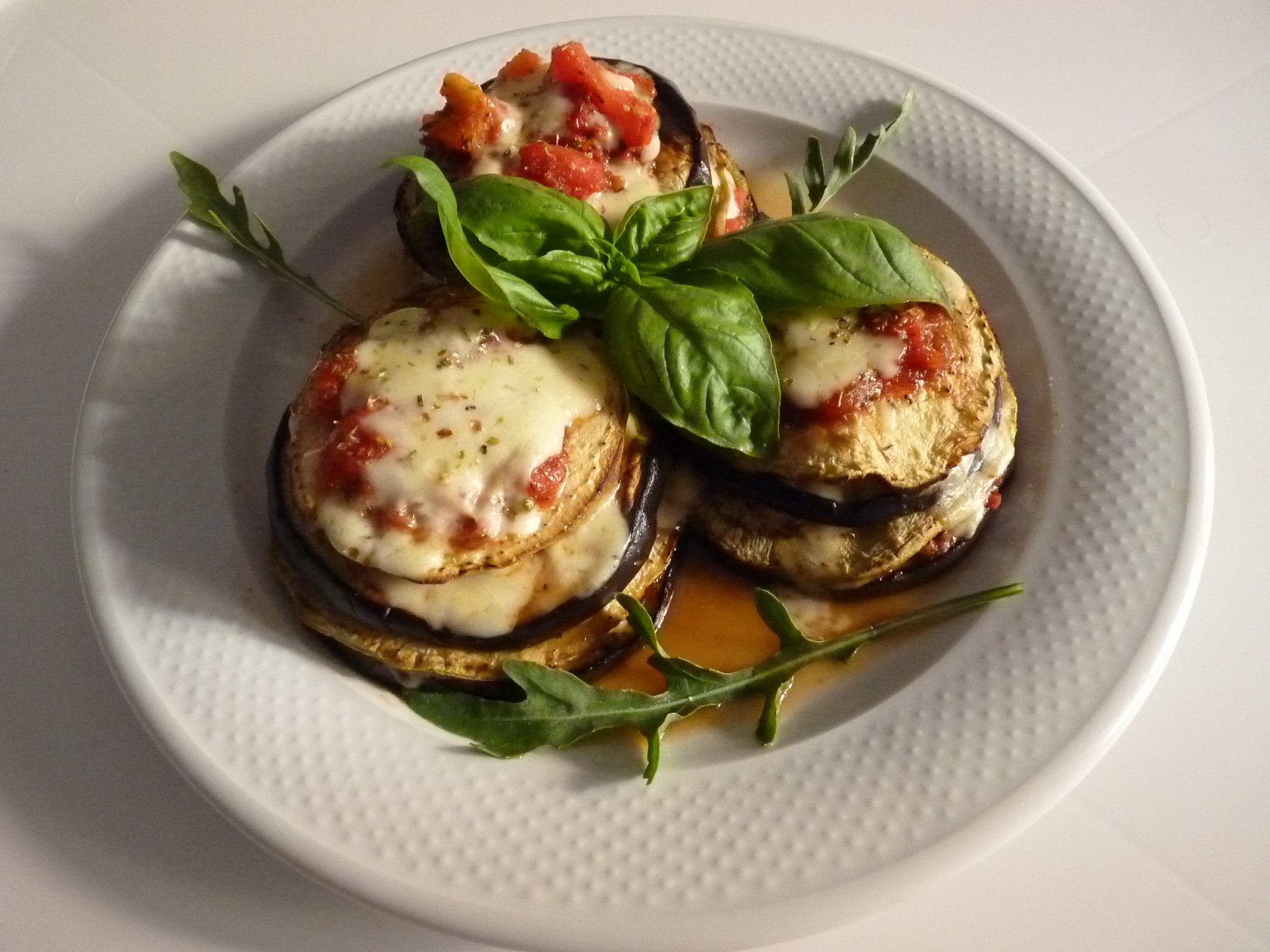 Tagliare le melanzane a fettine e metterle con un pizzico di sale in uno scolapasta per massimo 10 minuti affinché si insaporiscano. Sciacquarle velocemente sotto l'acqua, dopodiché asciugarle con carta da cucina. Riscaldare una bistecchiera o una padella antiaderente a fondo alto e grigliarle per qualche minuto su entrambi i lati.