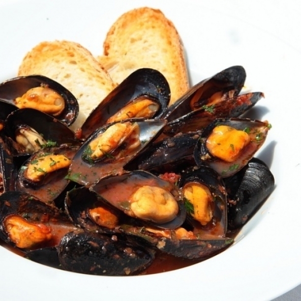 Lavare le cozze sotto l’acqua corrente, privarle del bisso e riporle in una casseruola. Fare cuocere a fuoco vivo con il coperchio fino a quando non si saranno aperte. Togliere un po’ di liquido di cottura ed aggiungere il succo del limone, un po’ di aceto, olio, pepe, pomodoro origano e il prezzemolo fresco appena tritato. Far cuocere per altri 10 minuti e servire.