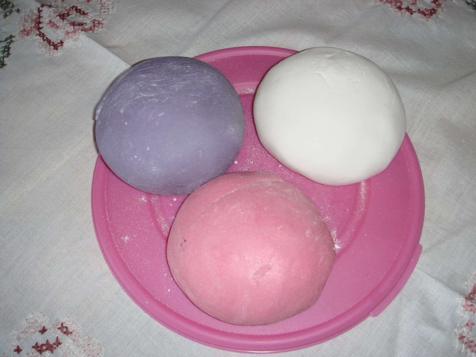 Trasferite il composto su di una spianatoia spolverizzata con zucchero a velo e continuate a lavorare il composto fino a che sarà liscio ed omogeneo (4) e non si appiccicherà più alle mani. Se desiderate ottenere una pasta di zucchero colorata, dividetela in panetti (5) e aggiungete il colorante desiderato (meglio se in gel o in pasta) (6). Continuate a lavorare energicamente il panetto fino a che il colorante si sarà assorbito e il colore sarà uniforme e se desiderate un colore più intenso non dovete fare altro che aggiungere altro colorante poco alla volta. Infine avvolgete la pasta di zucchero con della pellicola trasparente e conservatela in un luogo fresco e asciutto fino al momento di utilizzarla!