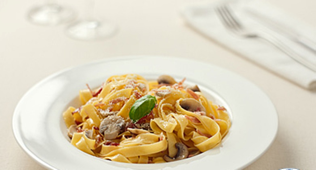 FETTUCCINE CON FUNGHI E PROSCIUTTO DI PARMA
