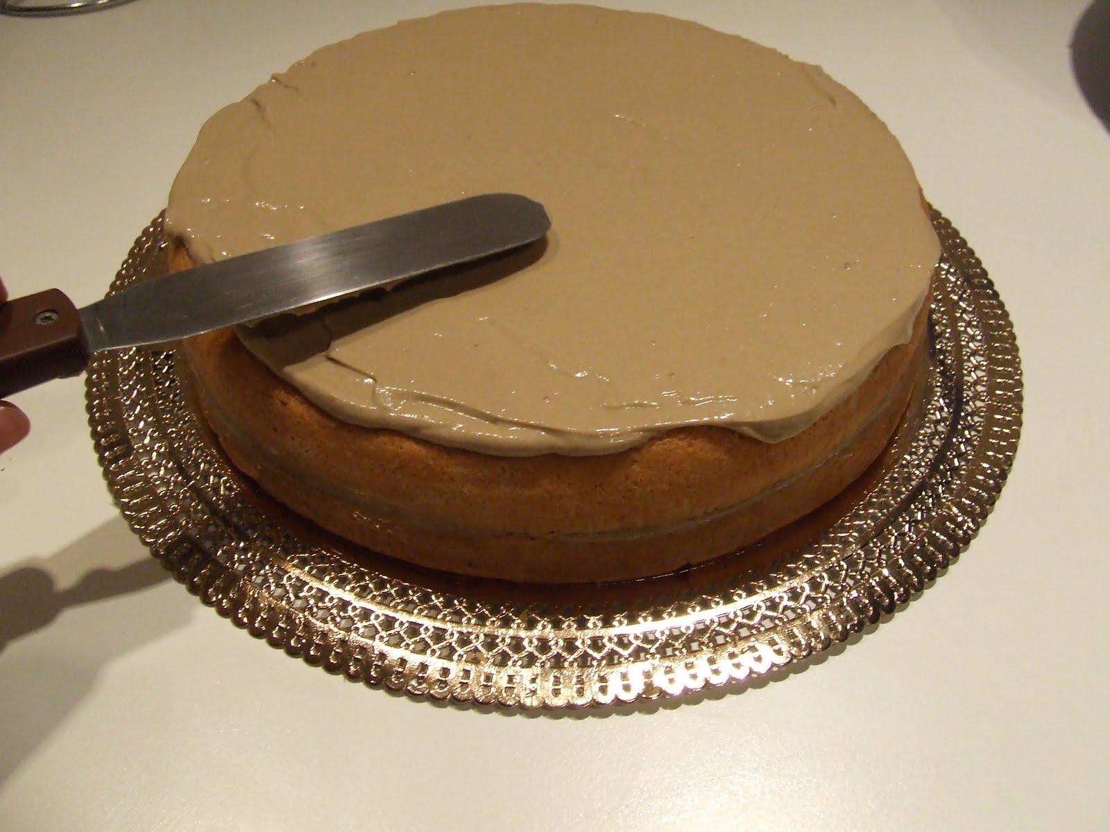 Portare il pentolino su fiamma bassa e far addensare per bene la crema. Quando la crema sarà fredda aggiungere 1/3 della panna montata a neve ben soda e amalgamare delicatamente. Nella restante panna montata aggiungere 4 cucchiai di crema al caffè e amalgamare delicatamente. Ci saranno così 2 creme dalla consistenza, dal colore e dal sapore diverse: la prima dal gusto di caffè più deciso per farcire la torta, la seconda dal gusto più delicato (un cappuccino ) per ricoprire e guarnire la torta.