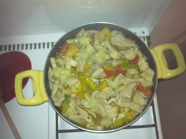 Mescolare la salsa di soia con 2 cucchiai d'olio, sale e paprika. Immergere i bocconcini di polli e lasciarli marinare. Scaldare l'olio e rosolare i peperoni tagliati a quadrotti per 3 minuti, aggiungere le cipolline tagliate a metà e rosolare ancora 2 minuti. Unire il pollo scolato dalla marinatura e mescolare di tanto in tanto fino a che il pollo sarà cotto.Scolare l'ananas e tagliarlo a pezzetti. Al suo succo aggiungere la maizena e mescolare. al pollo unire l'ananas e cuocere per 2-3 minuti, versare il succo con la maizena e sobbollire per 3 minuti fino a quando il sughetto si sarà addensato. servire accompagnato a del riso bianco lessato.