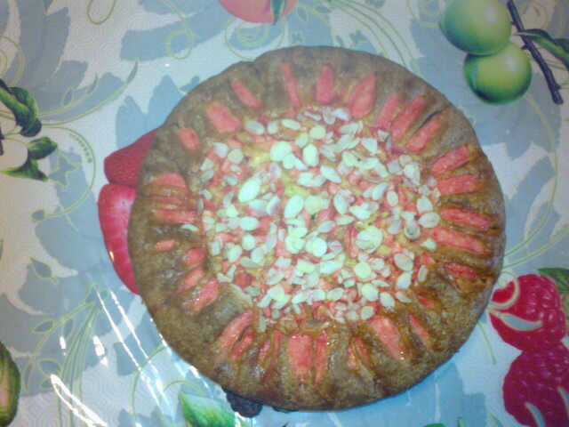 Sbucciare 3 mele, tagliarle a fettine e metterle in ammollo con il liquore per circa 10 minuti. Montare le uova con lo zucchero, unire l'olio, poi il latte ed infine la scorza d'arancia grattugiata, la farina ed il lievito. Sbucciare le 2 mele restanti e tagliarle a cubetti piccoli, infarinarli ed unirli all'impasto. Mescolare bene e versare in uno stampo (diametro 28-30 grado) imburrato ed infarinato.Sulla superficie affondare verticalmente le fette di mele imbevute nell'alchermes e le mandorle a lamelle. Infornare a 180 gradi per circa un'ora.