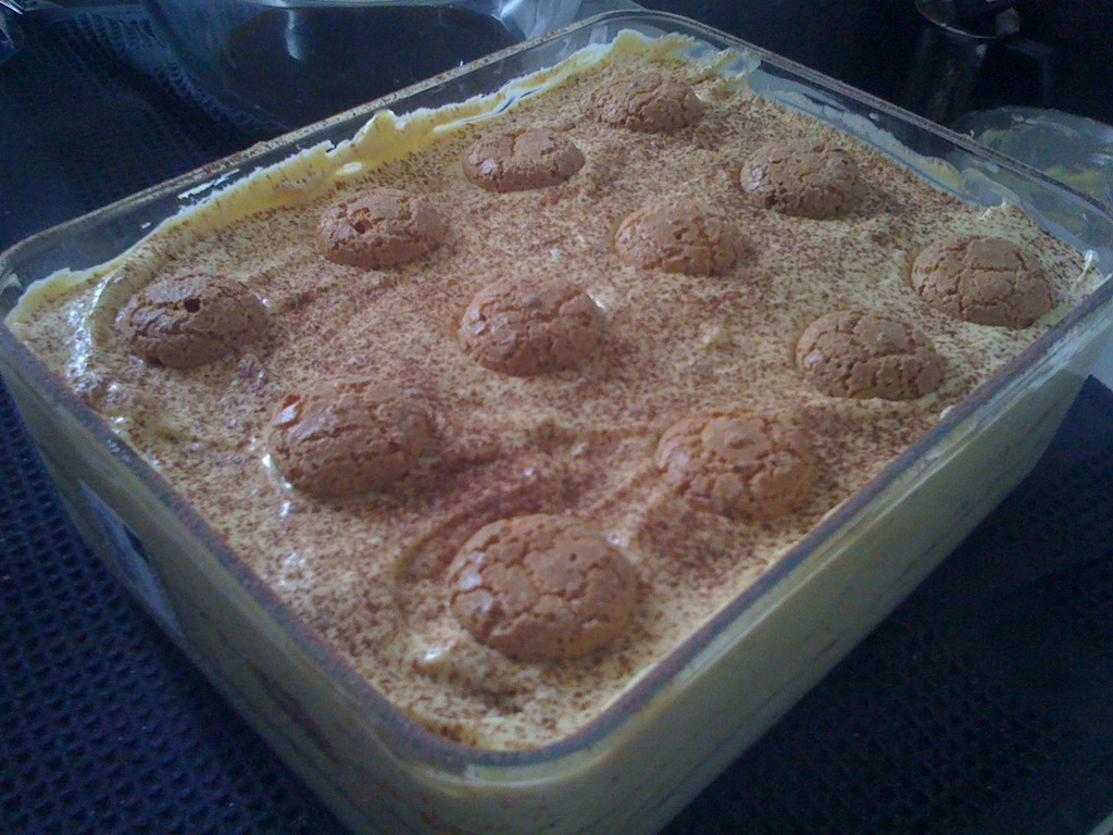 Lavorare i tuorli con lo zucchero ed amalgamare il mascarpone. Montare gli albumi a neve con un pizzico di sale ed unire ai tuorli e mascarpone mescolando con movimenti dal basso verso l'alto per non smontare. Iniziare ora le stratificazioni: in una pirofila rettangolare bella capiente creare il primo strato di amaretti imbeviti nel caffè caldo, coprire con la crema e spolverizzare con il cacao amaro. continuare così le stratificazioni fino ad esaurimento degli ingredienti ultimando con la crema e una spolverata di cacao amaro. Porre in frigo per qualche ora.