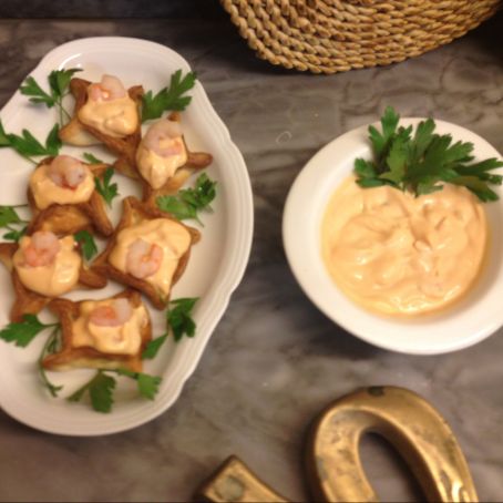 Unire la salsa ai gamberetti e disporla all'interno dei cestini aggiungendo il prezzemolo come decorazione.