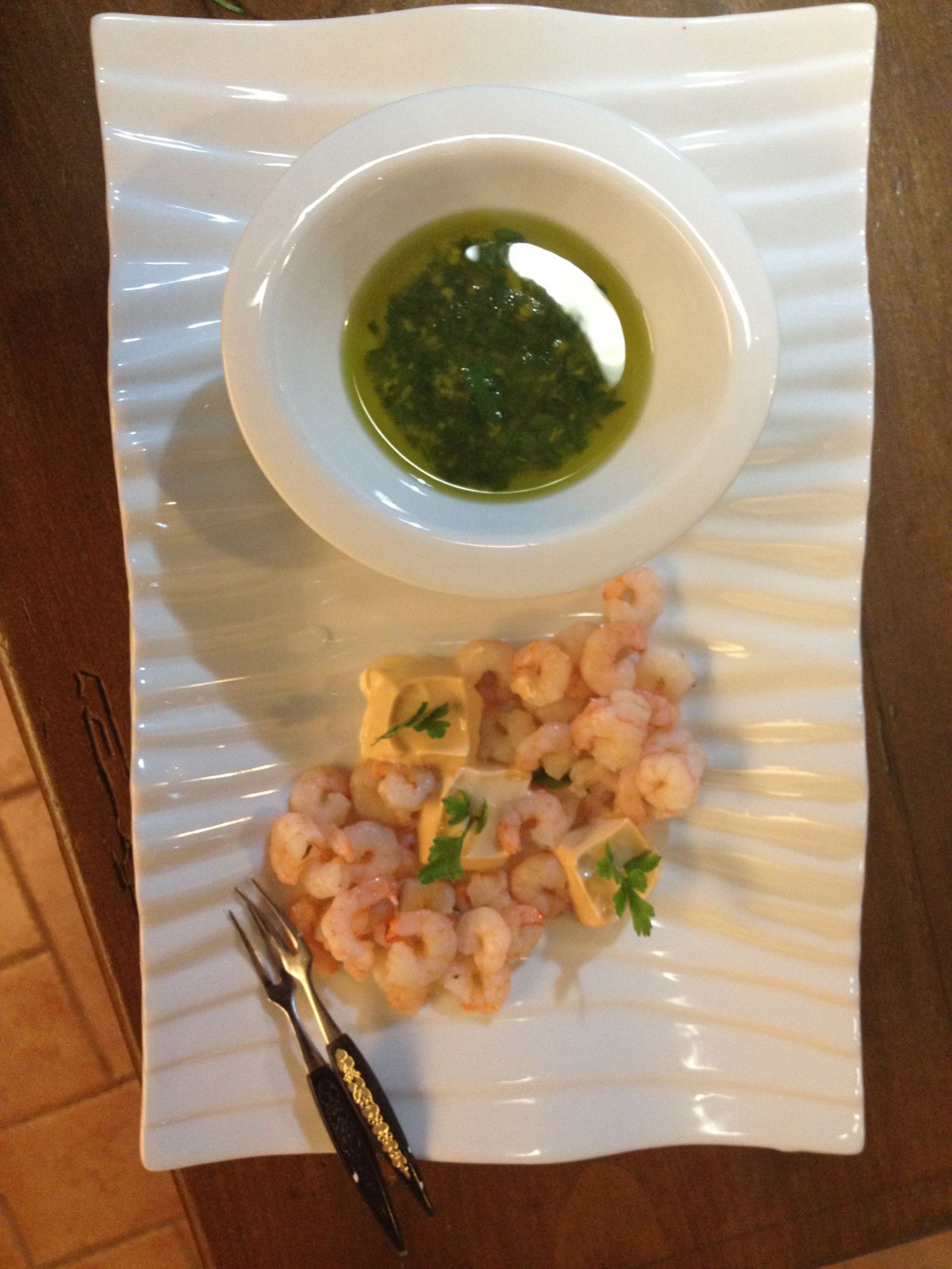 disporre a fianco del piatto i gamberetti che saranno pronti per essere inzuppati nella salsina da voi preparata