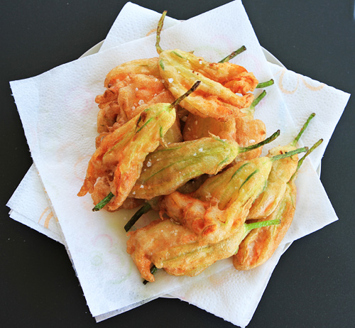 avvolgere delicatamente nella pastella i fiori, ad uno ad uno, cercando di non romperli e subito dopo immergere il fiore nell’olio bollente.