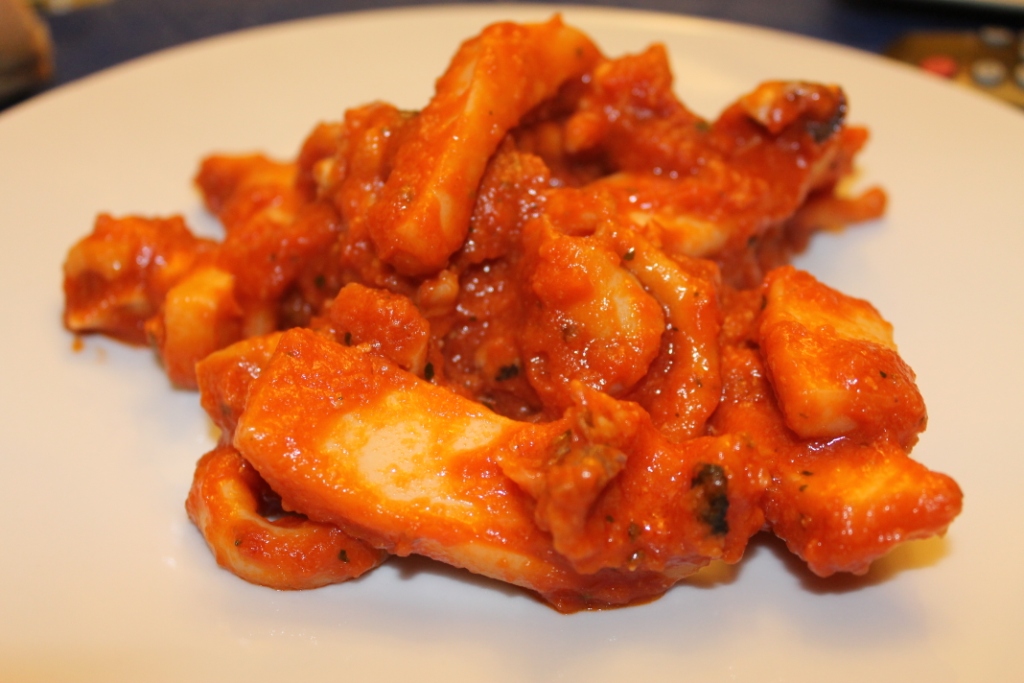 Sfumate con un pò di buon vino bianco secco ed aggiungete i pomodori spezzettati, un pizzico di sale e il peperoncino piccante.