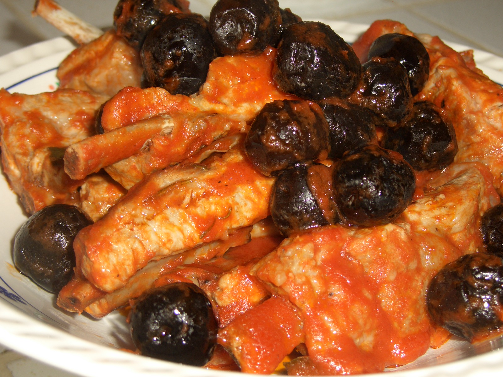 Aggiustate di sale. Unite il pomodoro, le olive e cuocete per 1 ora e 30 minuti.