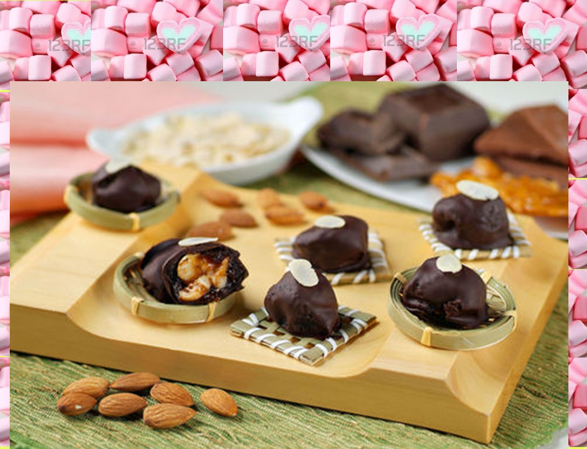Tagliate a pezzi il cioccolato e fatelo fondere a bagnomaria, assieme alla panna. Lasciate raffreddare e immergetevi le prugne ripiene, fino a ricoprirle completamente ; fate consolidare e servite.
