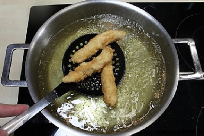 Friggere in olio bollente per ca. 5', girando spesso. Scolare su carta assorbente prima di servire.